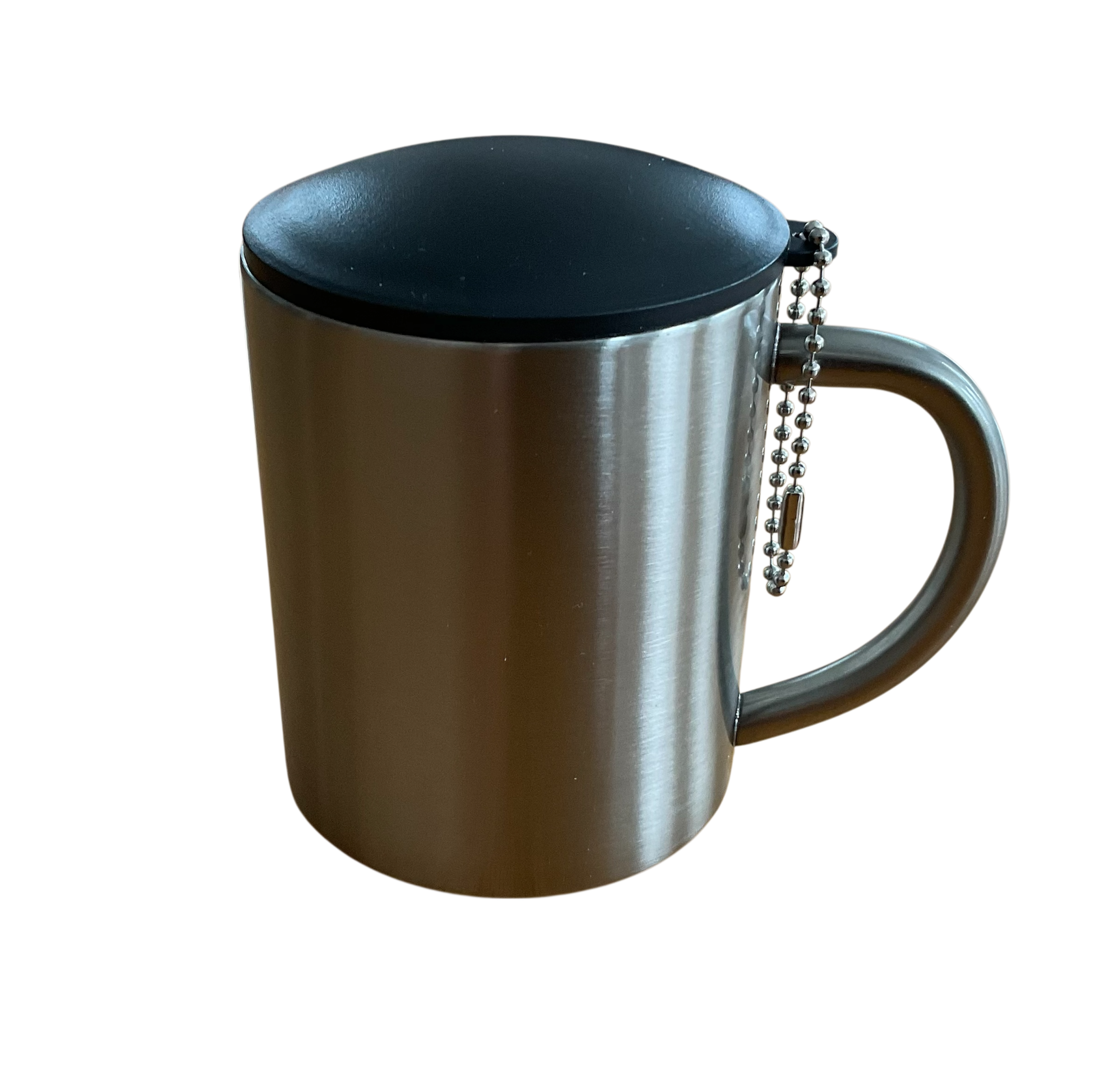Optionaler Deckel: Passend zur Edelstahltasse bieten wir einen praktischen Deckel mit Gummidichtung an. Die integrierte Kugelkette zum Fixieren am Becher verhindert, dass der Deckel verloren geht – perfekt für unterwegs!