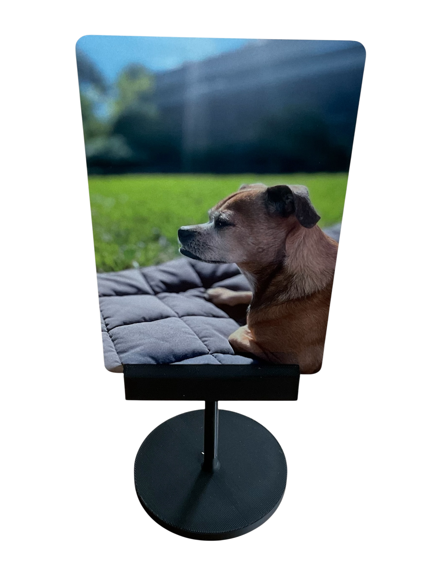 - Zusätzlich bestellbar: Passender 3D-gedruckter Fotoständer für Ihre Fotoplatte